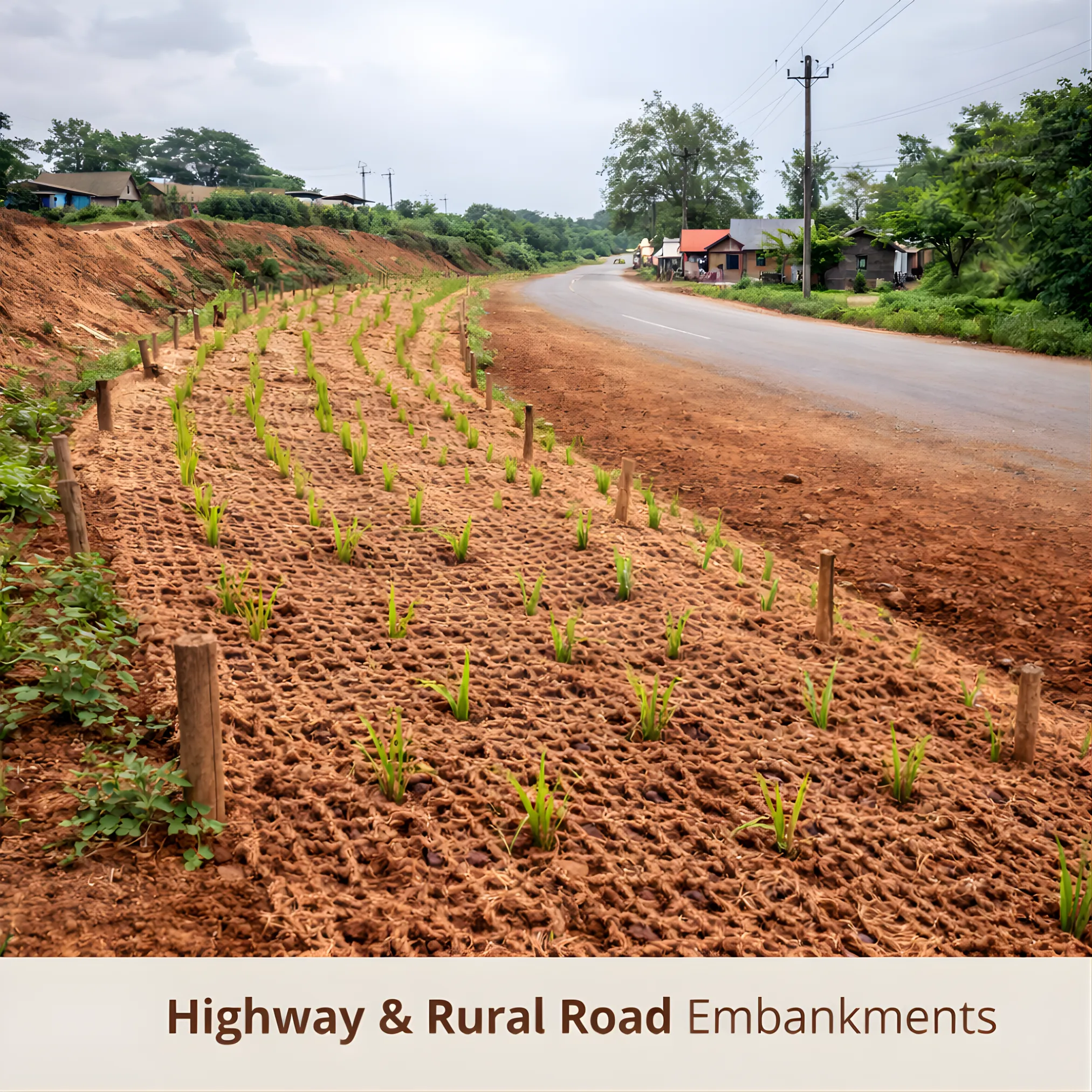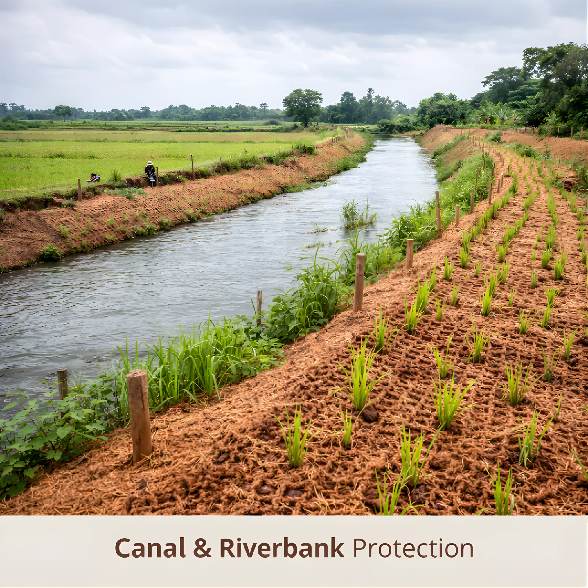 Controls soil erosion on slopes, embankments, canals, and riverbanks. -